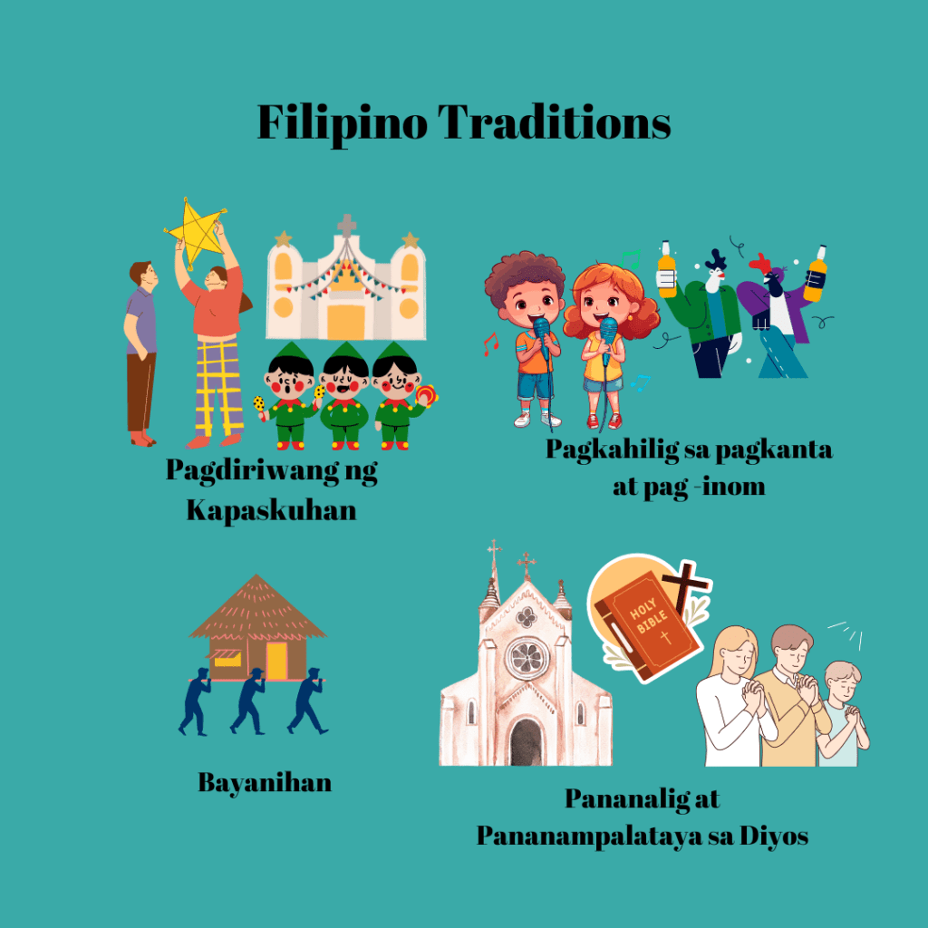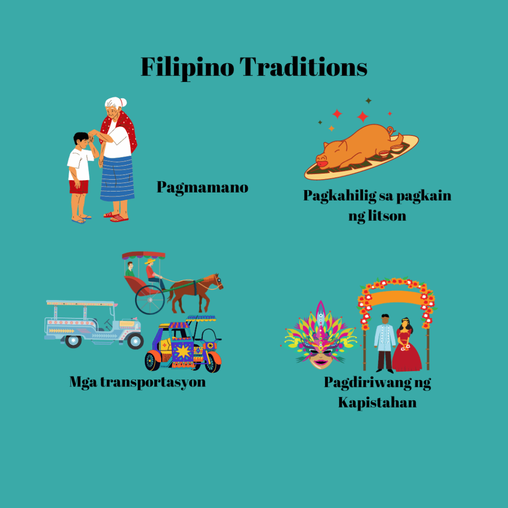 Here are some Filipino Traditions:(See reference: https://everythingzany.com/filipino-traditions/)